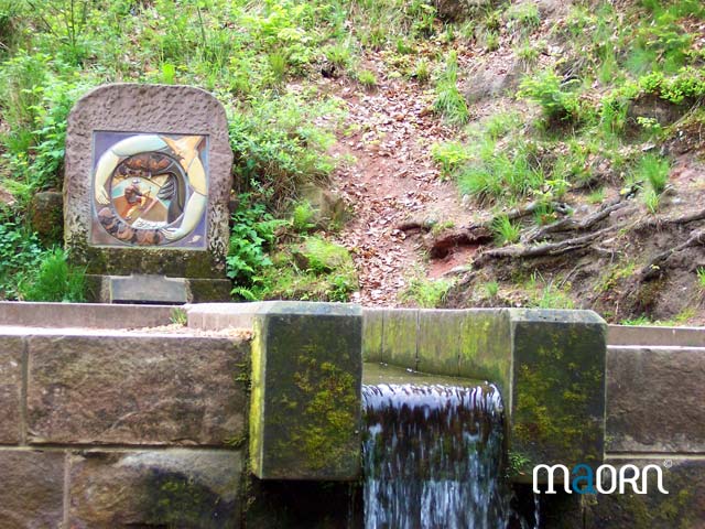 Depuis le parking, prendre le sentier balisé triangle rouge qui longe le ruisseau du Ramsthal. Au bout d’un moment, vous serez en vue d’un abri en bois. Avant celui-ci, prenez à gauche et traverser le ruisseau sur un pont en direction de la fontaine Mélanie où est érigée une céramique remarquable.